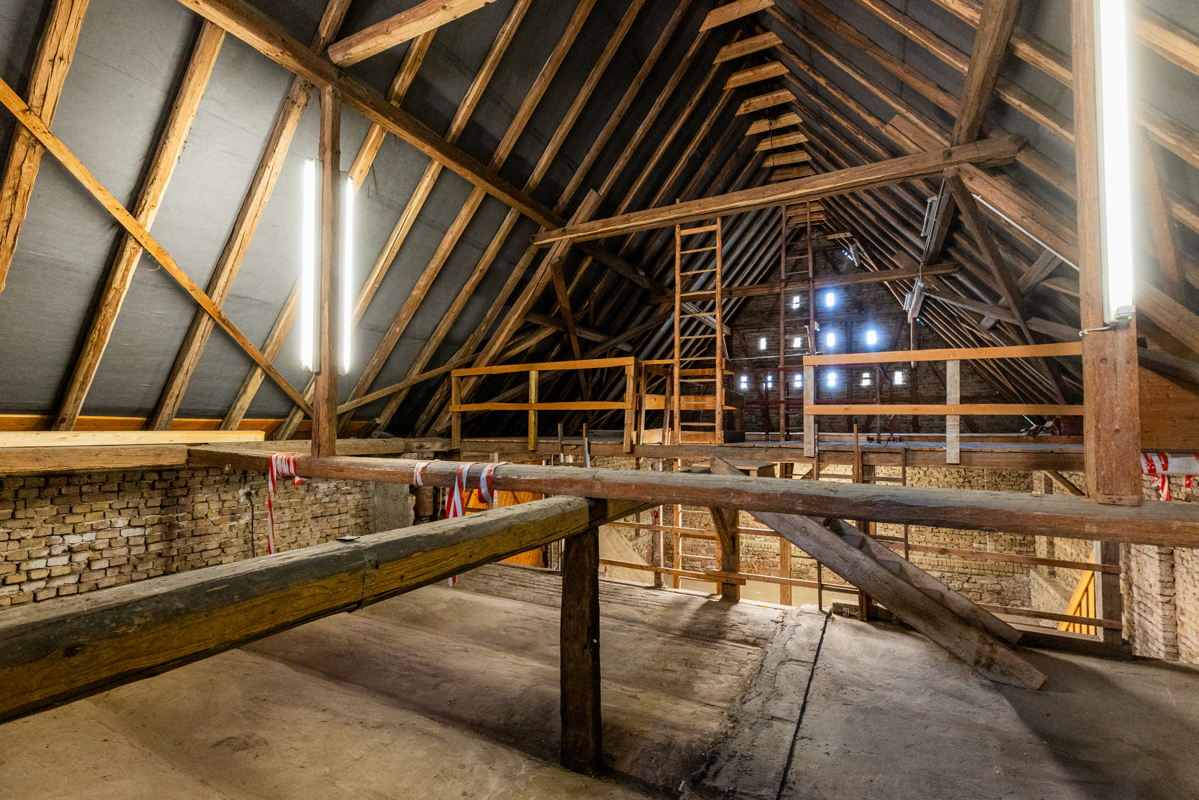 Die Lagerfläche befindet sich in einer Scheune gegenüber des Bürogebäudes.