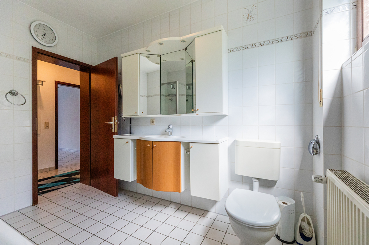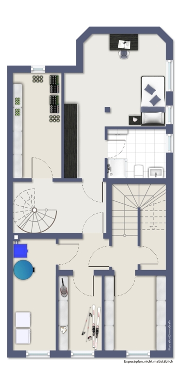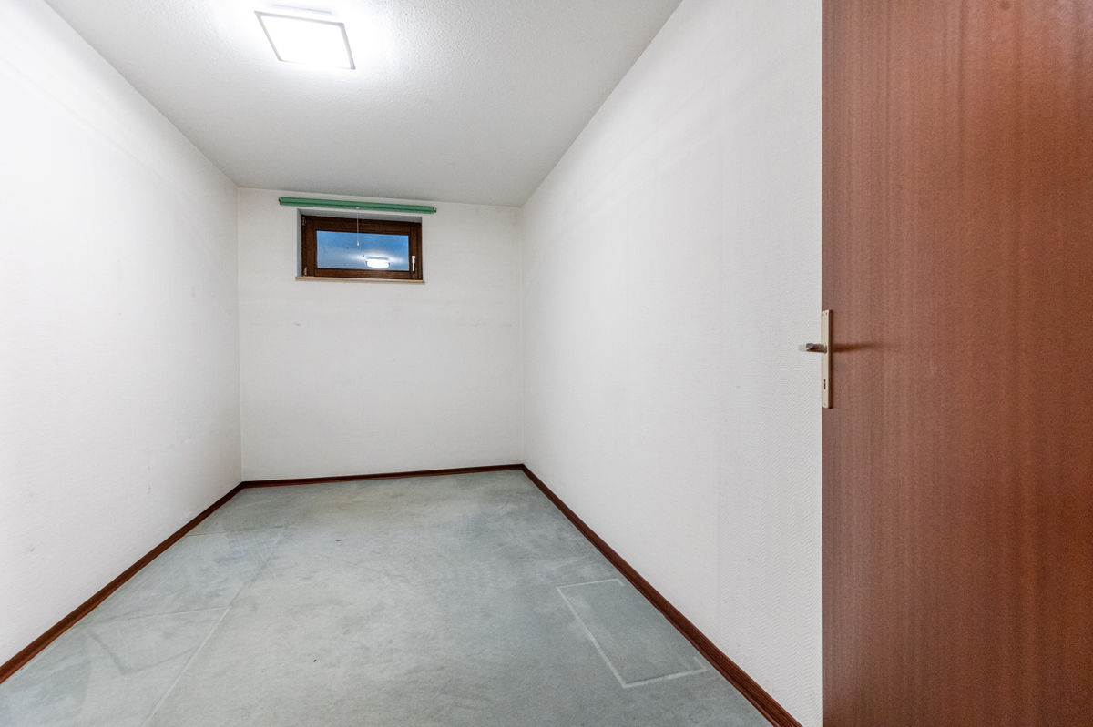 Das Souterrain erreichen Sie über eine Wendeltreppe im Wohnzimmer. Dort stehen Ihnen ein praktischer Abstellraum und ein vielseitig nutzbarer Hobbyraum (wohnlich nutzbar) , der baurechtlich Nutzfläche ist, mit eigenem Bad zur Verfügung – perfekt für Gäste, Homeoffice oder kreative Hobbys.